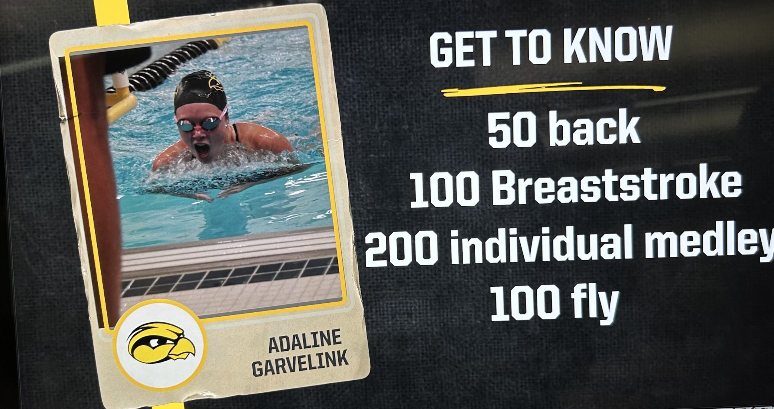Adaline Garvelink is a sophomore at Hamilton High School. She is on the Varsity Swim and Dive team and has been swimming for 8 years. During state, she swims the 50 back in the Medley relay and the 100 breaststroke. She usually swims the 200 individual medley and sometimes swims the 100 fly.