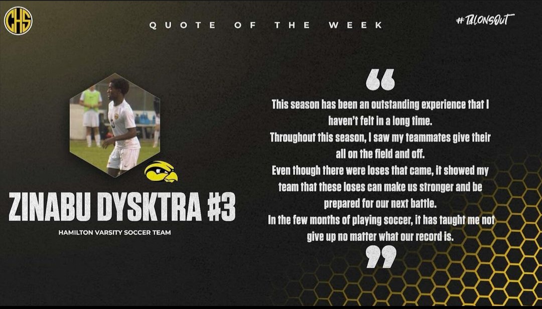 October24October 24, 2023Boys Soccer Quote of the Week From Zinabu DykstraBy CHS EditorIn Boys Soccer Fall Sports