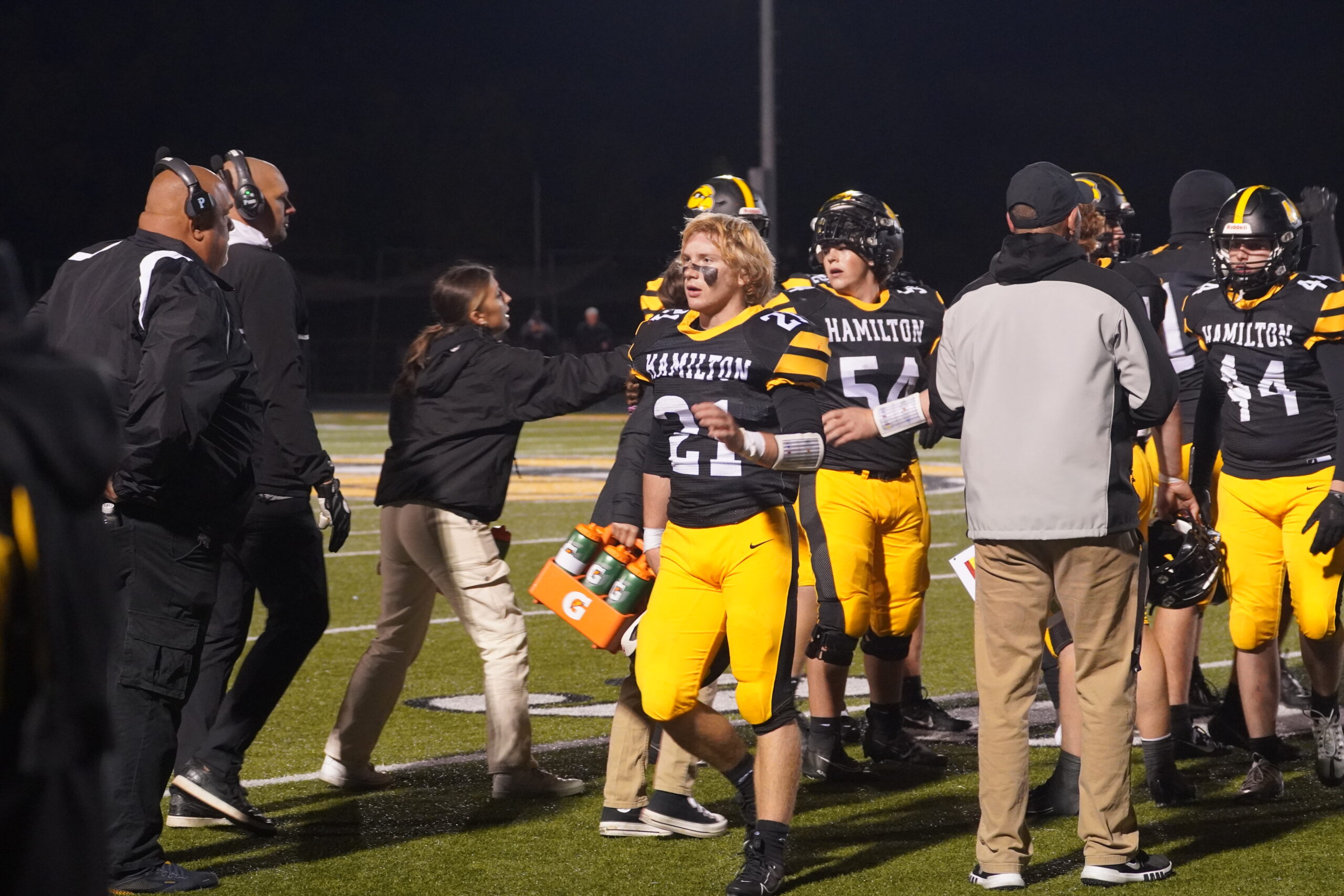 What are your thoughts on being on varsity? Is it different playing with older players compared to younger players? What is the impact of being on varsity skill-wise? These are some of the questions I had for the three sophomores on the varsity football team. Tyler Michielsen, Michael Klomparens, and Brooks Hawkins. Tyler talked about how he wasn’t supposed to be on varsity, but one of the players got injured so they decided to pull him up to replace the spot. Tyler’s overall reaction was that he was nervous since he was playing a position that he hadn’t played in years. As time came he got more comfortable with the team and the position. Micheal and Brooks talked about how excited they got when they found out and told their family about the great news. The second question was, What was it like playing with Freshman teammates last year and Junior and Senior teammates this year? The boys talked about how the difference between Freshman and Varsity games was that when you play at the Varsity level you get the spotlight, the student section, and tons of people watching, and the pace of the game is a lot different. People are bigger, stronger, and faster. The last question I had for the three boys was, how did playing on varsity impact your skill level, and do they think they would have been better playing on JV? All three of the boys talked about how drastically better they got playing on varsity. If they played on JV they would have used their strength to get through the opponents and wouldn’t use the right form, and technique that they learned on varsity. It also helped them for the future in football, having one more year of experience playing on varsity. Overall the three sophomore football players, Tyler Michielsen, Michael Klomparens, and Brooks Hawkins, were excited to make varsity football and learn new techniques and strategies and how to use their strengths against the competition. They enjoyed their season and can’t wait for their future in Hamilton Football!