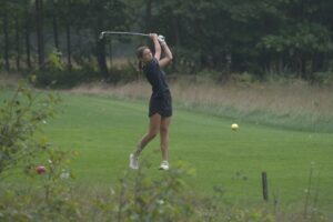 Audrey VanBeukering replied “On hole 6, I start by hitting my driver, then I will use an iron to get up to the green and avoid the bunkers. Then I will finish by putting the ball in.”