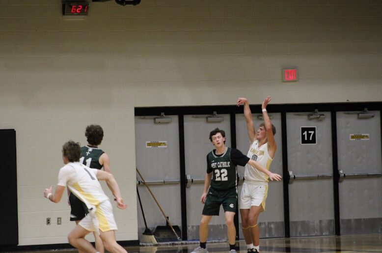 At home, the Hamilton Hawkeyes survive the tough West Catholic team with a final layup in the final 5 secconds of the game making the final score, 56-55. Justin Mcillwain got 2 steals this game and also a dominating 26 points! James Hoffman also got a demanding 10 points and 3 rebounds.